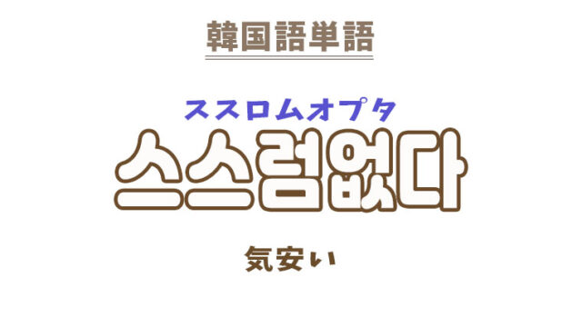 単語・慣用句 韓国語【스스럼없다】を覚える! 2023年1月14日 makumaku 스스럼없다ススロムオプタ 気安い〔形容詞〕 一緒に覚える! 【없다】:ない〔形容詞〕 【스스럼없이】:気兼ねなく〔副詞〕 【스스럽다】:気兼ねしない …