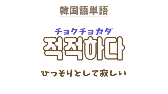 単語・慣用句 韓国語【적적하다】を覚える! 2022年10月27日 makumaku 적적하다チョクチョカダ ひっそりとして寂しい〔形容詞〕 一緒に覚える! 【적적히】:寂しく〔副詞〕 【적적하다】の解説 【적적하다】の日 …