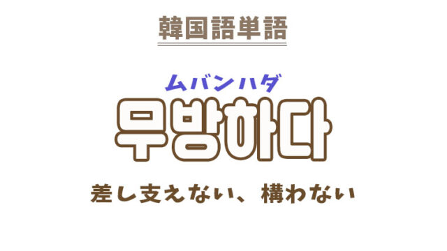 単語・慣用句 韓国語【무방하다】を覚える! 2022年10月8日 makumaku 무방하다ムバンハダ 差し支えない、構わない〔形容詞〕 一緒に覚える! 【무방히】:差し支えなく〔副詞〕 【무방하다】の解説 【무방하다】 …