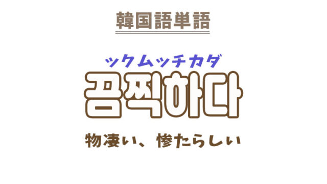 単語・慣用句 韓国語【끔찍하다】を覚える! 2022年9月29日 makumaku 끔찍하다ックムッチカダ ものすごい、惨たらしい〔形容詞〕 一緒に覚える! 【끔찍스럽다】:惨たらしい〔形容詞〕 【끔찍이】:心から〔副詞〕 【끔찍끔 …