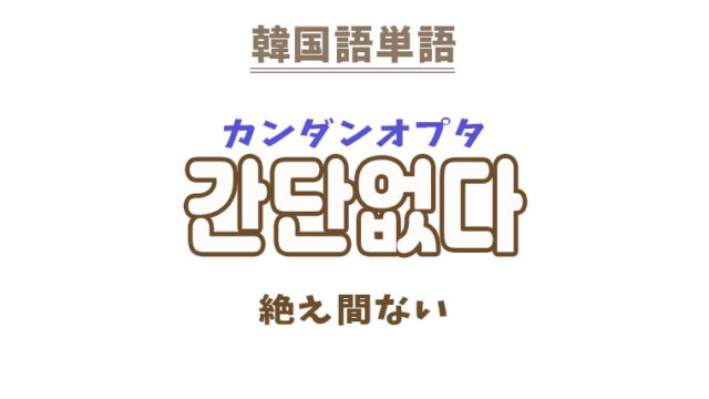 単語・慣用句 韓国語【간단없다】を覚える! 2022年9月26日 makumaku 간단없다カンダンオプタ 絶え間ない、ひっきりなしだ〔形容詞〕 一緒に覚える! 【간단】:絶え間〔名詞〕 【간단없이】:絶え間なく〔副詞〕 【없다】: …