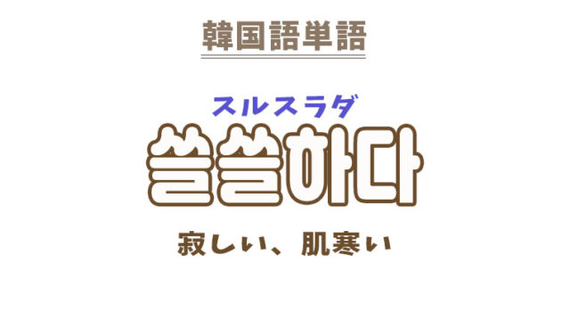 単語・慣用句 韓国語【쓸쓸하다】を覚える! 2022年9月17日 makumaku 쓸쓸하다スルスラダ 寂しい、肌寒い〔形容詞〕 一緒に覚える! 【쓸쓸해하다】:寂しがる〔動詞〕 【쓸쓸히】:寂しく〔副詞〕 【쓸쓸하다】 …