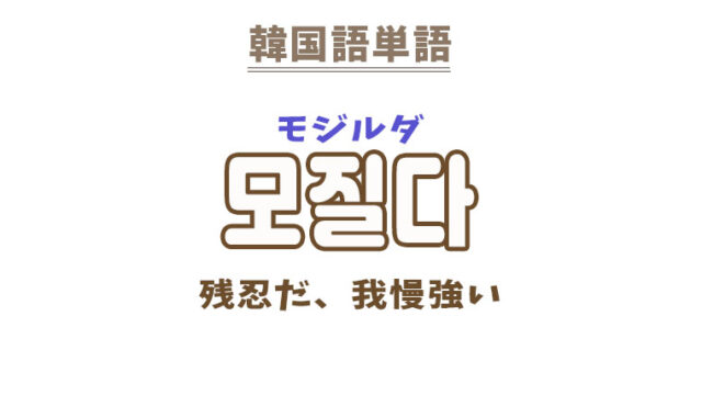 単語・慣用句 韓国語【모질다】を覚える! 2022年9月15日 makumaku 모질다モジルダ 残忍だ、我慢強い〔形容詞〕 【모질다】の解説 【모질다】の日本語訳。 残忍だ、惨い (辛さに)よく耐える、我慢強い ( …