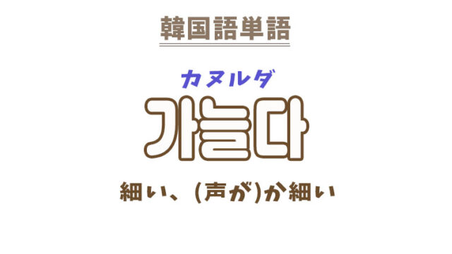 単語・慣用句 韓国語【가늘다】を覚える! 2022年3月13日 makumaku 가늘다カヌルダ 細い、(声が)か細い、(粒・目が)細かい〔形容詞〕 一緒に覚える! 【가늘디가늘다】:非常に細い〔形容詞〕 【가늘어지다】:細くなる〔動詞 …