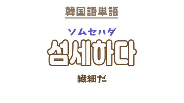 単語・慣用句 韓国語【섬세하다】を覚える! 2022年3月6日 makumaku 섬세하다ソムセハダ 繊細だ、デリケートだ〔形容詞〕 一緒に覚える! 【섬세】:繊細〔名詞〕 【섬세히】:繊細に〔副詞〕 【섬세하다】の解 …