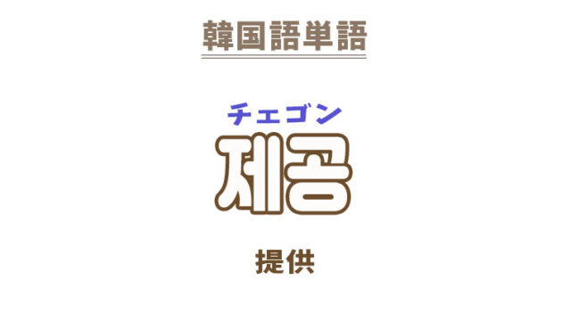 제공チェゴン 提供〔名詞〕 一緒に覚える! 【제공되다】:提供される〔動詞〕 【제공하다】:提供する〔動詞〕 【제공】の解説 【제 …