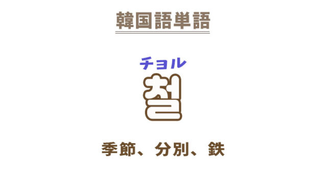 単語・慣用句 韓国語【철】を覚える! 2025年12月15日 makumaku 철チョル 季節、分別、鉄〔名詞〕 【철】の解説 【철】の日本語訳 〔名詞〕季節、シーズン1年のうちのある時期、時とき、時季盛りの時期、適期、旬、好期 …