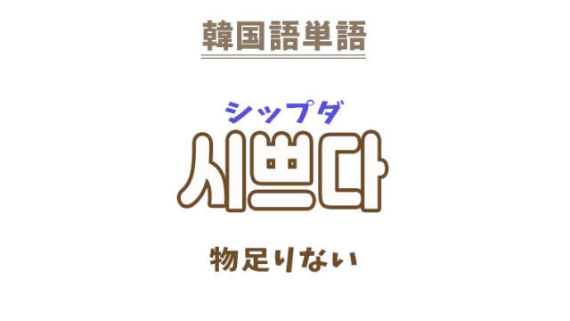 単語・慣用句 韓国語【시쁘다】を覚える! 2025年12月16日 makumaku 시쁘다シップダ 物足りない〔形容詞〕 一緒に覚える! 【시뻐하다】:物足りなく思う〔動詞〕 【시쁘둥하다】:仏頂面だ〔形容詞〕 【시쁘다 …
