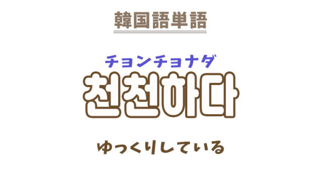 単語・慣用句 韓国語【천천하다】を覚える! 2023年11月28日 makumaku 천천하다チョンチョナダ ゆっくりしている〔形容詞〕 一緒に覚える! 【천천히】:ゆっくりと〔副詞〕 【천천하다】の解説 【천천하다】の日 …