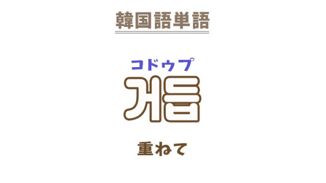거듭コドゥプ 重ねて〔副詞〕 一緒に覚える! 【거듭되다】:度重なる〔動詞〕 【거듭제곱】:累乗〔名詞〕 【거듭하다】:重ねる〔動詞〕  …