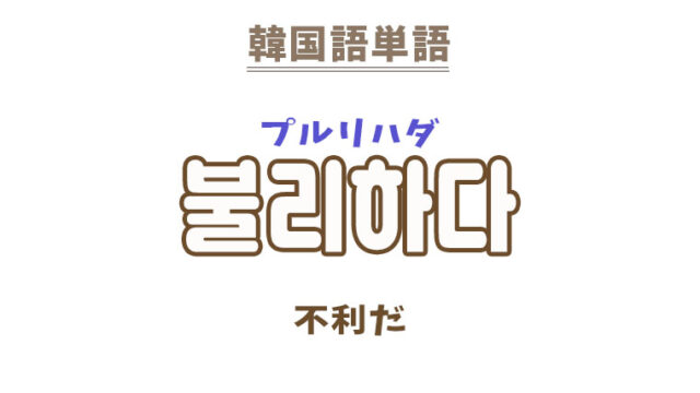 単語・慣用句 韓国語【불리하다】を覚える! 2023年10月11日 makumaku 불리하다プルリハダ 不利だ〔形容詞〕 一緒に覚える! 【불리】:不利〔名詞〕 【불리하다】の解説 【불리하다】の日本語訳。 不 …