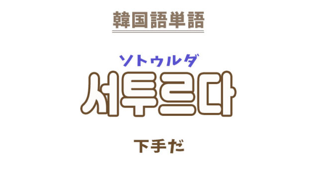 単語・慣用句 韓国語【서투르다】を覚える! 2023年9月18日 makumaku 서투르다ソトゥルダ 下手だ〔形容詞〕 【서투르다】の解説 【서투르다】の日本語訳。 下手だ、不器用だ、不得手だ、まずい、拙い、未熟だ、不慣れだ、稚 …