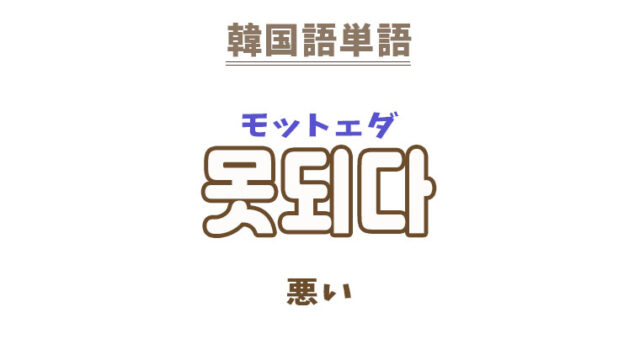単語・慣用句 韓国語【못되다】を覚える! 2023年5月22日 makumaku 못되다モットェダ 悪い〔形容詞〕 【못되다】の解説 【못되다】の日本語訳 (たちが)悪い、意地悪だ、あくどい (農作物の)出来が悪い、不作だ、 …