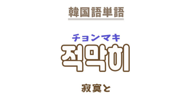 単語・慣用句 韓国語【적막히】を覚える! 2025年5月15日 makumaku 적막히チョンマキ 寂寞と〔副詞〕 一緒に覚える! 【적막】:寂寞〔名詞〕 【적막하다】:寂寞としている〔形容詞〕 【적막히】の解説 …