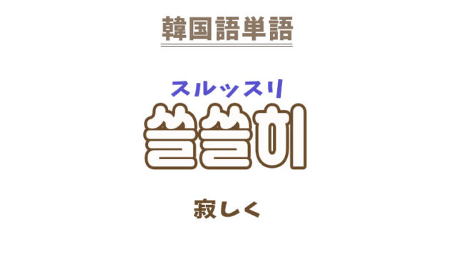 単語・慣用句 韓国語【쓸쓸히】を覚える! 2025年5月19日 makumaku 쓸쓸히スルッスリ 寂しく〔副詞〕 一緒に覚える! 【쓸쓸하다】:寂しい〔形容詞〕 【쓸쓸해하다】:寂しがる〔動詞〕 【쓸쓸히】の解説 …