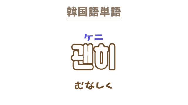 単語・慣用句 韓国語【괜히】を覚える! 2022年10月21日 makumaku 괜히ケニ むなしく〔副詞〕 一緒に覚える! 【괜하다】:無駄な〔形容詞〕 【괜히】の解説 【괜히】の日本語訳。 むなしく、無性 …