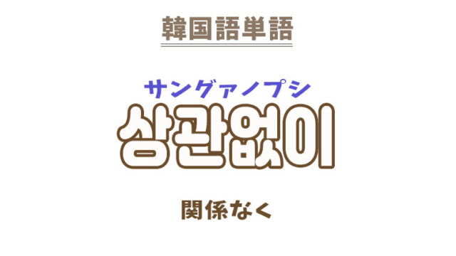 単語・慣用句 韓国語【상관없이】を覚える! 2023年10月28日 makumaku 상관없이サングァノプシ 関係なく〔副詞〕 一緒に覚える! 【상관】:相関〔名詞〕 【상관없다】:(互いに)関係がない〔形容詞〕 【상관없 …