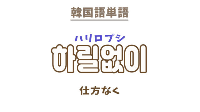 単語・慣用句 韓国語【하릴없이】を覚える! 2023年11月17日 makumaku 하릴없이ハリロプシ 仕方なく〔副詞〕 一緒に覚える! 【하릴없다】:どうにも仕方がない〔形容詞〕 【하릴없이】の解説 【하릴없이】の日本 …