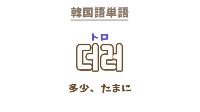 単語・慣用句 韓国語【더러】を覚える! 2022年10月31日 makumaku 더러トロ 多少、たまに〔副詞〕~に〔助詞〕 【더러】の解説 【더러】の日本語訳。 多少、いくらか、若干、少しはたまに、稀に、時々、時には〔副詞〕 …
