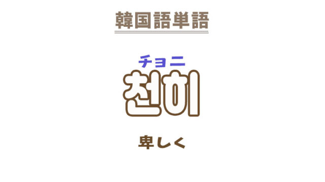単語・慣用句 韓国語【천히】を覚える! 2022年11月4日 makumaku 천히チョニ 卑しく〔副詞〕 一緒に覚える! 【천하다】:卑しい〔形容詞〕 【천히】の解説 【천히】の日本語訳。 卑しく …