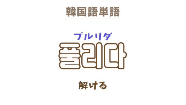 単語・慣用句 韓国語【풀리다】を覚える! 2024年2月23日 makumaku 풀리다プルリダ 解ける〔動詞〕 一緒に覚える! 【풀려나다】:解かれて出る〔動詞〕 【풀리다】の解説 【풀리다】の日本語訳 解け …
