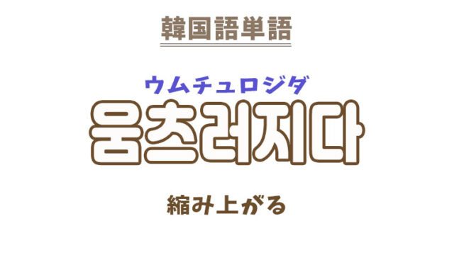 単語・慣用句 韓国語【움츠러지다】を覚える! 2024年2月8日 makumaku 움츠러지다ウムチュロジダ 縮み上がる〔動詞〕 一緒に覚える! 【움츠리다】:縮める〔動詞〕 【움츠러지다】の解説 【움츠러지다】の日本語 …