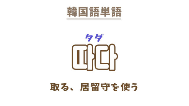 単語・慣用句 韓国語【따다】を覚える! 2023年11月9日 makumaku 따다タダ 取る、居留守を使う〔動詞〕 【따다】の解説 【따다】の日本語訳 ちぎる、摘む、取る、もぐ切開する、潰す開ける、抜く引用する、抜き取る、抜粋 …