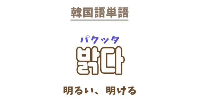 単語・慣用句 韓国語【밝다】を覚える! 2023年9月13日 makumaku 밝다パクッタ 明るい〔形容詞〕明ける〔動詞〕 【밝다】の解説 【밝다】の日本語訳 (光・色・性格などが)明るい(物事に)通じている、詳しい公正だ、公 …