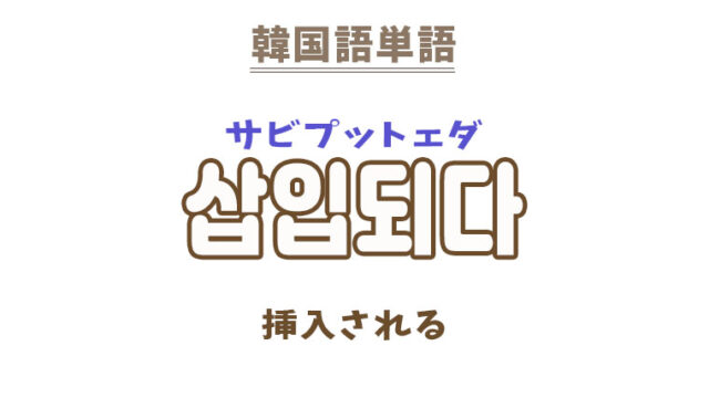 単語・慣用句 韓国語【삽입되다】を覚える! 2023年9月12日 makumaku 삽입되다サビプットェダ 挿入される〔動詞〕 一緒に覚える! 【삽입】:挿入〔名詞〕 【삽입하다】:挿入する〔動詞〕〕 【삽입되다】の解説 …