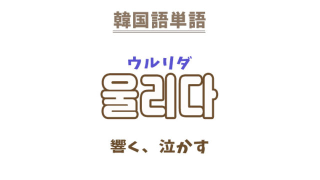 単語・慣用句 韓国語【울리다】を覚える! 2023年7月7日 makumaku 울리다ウルリダ 響く、泣かす〔動詞〕 【울리다】の解説 【울리다】の日本語訳。 (音が)響く、響き渡る、出る、鳴る、轟く、どよめく(広く世に)知ら …
