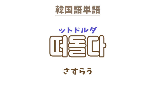 単語・慣用句 韓国語【떠돌다】を覚える! 2023年6月10日 makumaku 떠돌다ットドルダ さすらう〔動詞〕 一緒に覚える! 【돌다】:回る〔動詞〕 【떠돌아다니다】:彷徨い歩く〔動詞〕 【떠돌이】:放浪者〔名詞〕 …