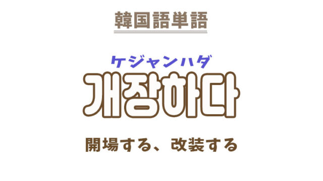 単語・慣用句 韓国語【개장하다】を覚える! 2023年6月15日 makumaku 개장하다ケジャンハダ 開場する、改装する〔動詞〕 【개장하다】の解説 【개장하다】の日本語訳 開場する 改装する ①【개장하다 …