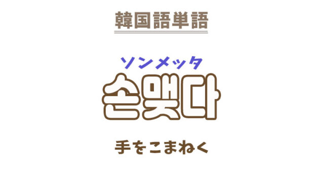 単語・慣用句 韓国語【손맺다】を覚える! 2023年5月10日 makumaku 손맺다ソンメッタ 手をこまねく〔動詞〕 一緒に覚える! 【손】:手〔名詞〕 【손맺다】の解説 【손맺다】の日本語訳。 手をこま …