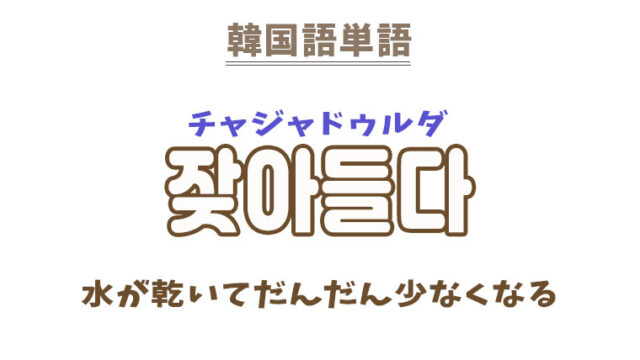 単語・慣用句 韓国語【잦아들다】を覚える! 2023年5月3日 makumaku 잦아들다チャジャドゥルダ 水が乾いてだんだん少なくなる〔動詞〕 一緒に覚える! 【잦다】:だんだん減って少し残る〔動詞〕 【잦아들다】の解説 …