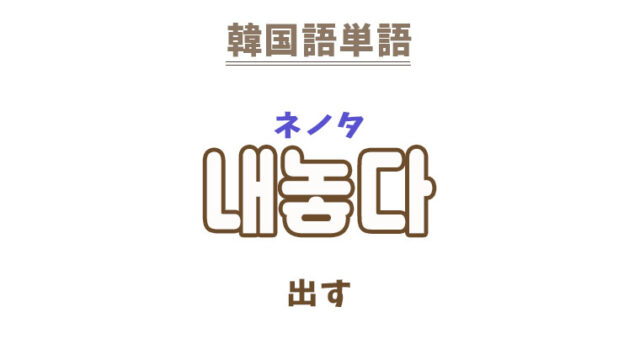 単語・慣用句 韓国語【내놓다】を覚える! 2023年4月20日 makumaku 내놓다ネノタ 出す〔動詞〕 一緒に覚える! 【내다】:出す〔動詞〕 【내놓다】の解説 【내놓다】の日本語訳。 出す、取り出す …