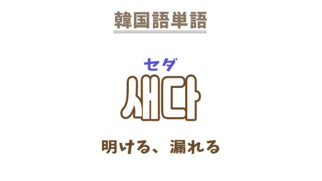 単語・慣用句 韓国語【새다】を覚える! 2023年3月20日 makumaku 새다セダ 明ける、漏れる〔動詞〕 【새다】の解説 【새다】の日本語訳。 (夜が)明ける、白む(夜を)明かす、徹夜する※「새우다:明かす〔動詞〕」の …