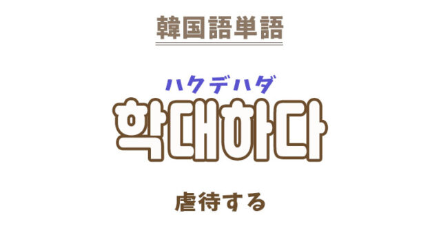 単語・慣用句 韓国語【학대하다】を覚える! 2023年3月3日 makumaku 학대하다ハクデハダ 虐待する〔動詞〕 一緒に覚える! 【학대】:虐待〔名詞〕 【학대하다】の解説 【학대하다】の日本語訳。 虐 …