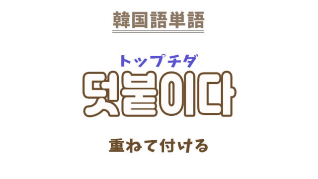 単語・慣用句 韓国語【덧붙이다】を覚える! 2023年3月5日 makumaku 덧붙이다トップチダ 重ねて付ける〔動詞〕 一緒に覚える! 【덧-】:さらに重ねる・加えるの意〔接頭語〕 【덧붙이기】:付け加えること〔名詞〕 【붙이 …