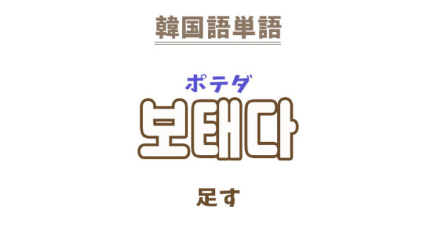 単語・慣用句 韓国語【보태다】を覚える! 2023年2月4日 makumaku 보태다ポテダ 足す、補う〔動詞〕 一緒に覚える! 【보태기】:足し算〔名詞〕 【보탬】:加えること〔名詞〕 【보태다】の解説 【보 …