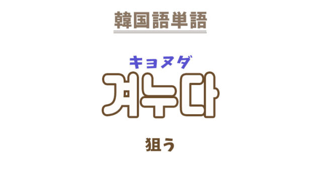 単語・慣用句 韓国語【겨누다】を覚える! 2023年1月14日 makumaku 겨누다キョヌダ 狙う〔動詞〕 一緒に覚える! 【겨뉘보다】:狙いを定める〔動詞〕 【겨누다】の解説 【겨누다】の日本語 狙いを …