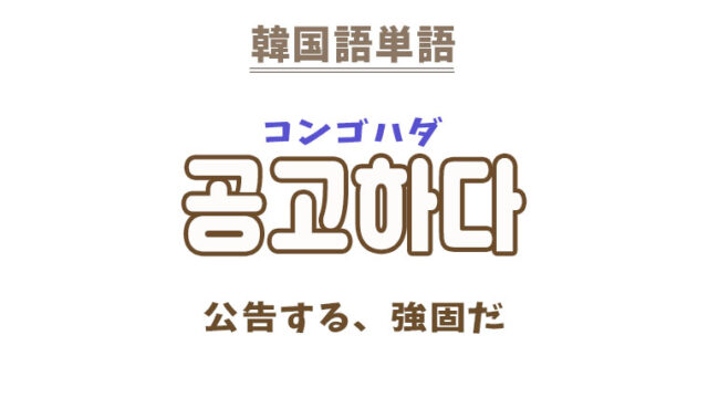 単語・慣用句 韓国語【공고하다】を覚える! 2022年11月29日 makumaku 공고하다コンゴハダ 公告する〔動詞〕強固だ〔形容詞〕 【공고하다】の解説 【공고하다】の日本語訳。 公告する、告知する〔動詞〕 強固だ〔形容 …