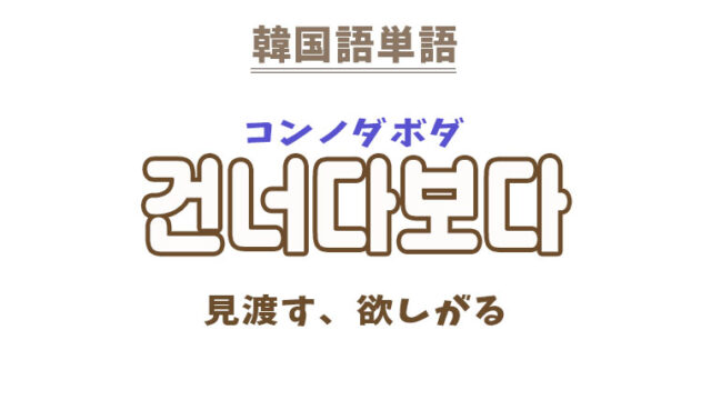 単語・慣用句 韓国語【건너다보다】を覚える! 2022年10月5日 makumaku 건너다보다コンノダボダ 見渡す、欲しがる〔動詞〕 一緒に覚える! 【건너다】:渡る〔動詞〕 【보다】:見る〔動詞〕 【건너다보다】の解説 …