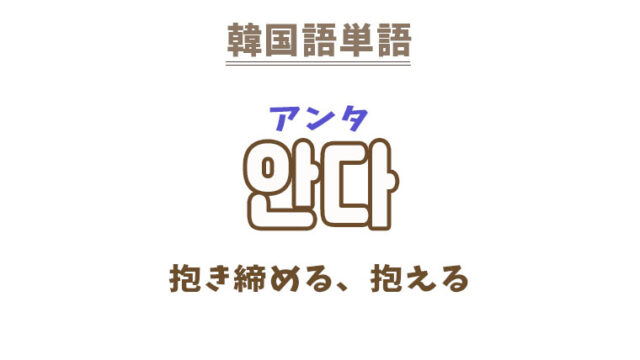 単語・慣用句 韓国語【안다】を覚える! 2022年9月29日 makumaku 안다アンタ 抱き締める、抱える〔動詞〕 【안다】の解説 【안다】の日本語訳。 抱き締める、抱える、抱く (雨・風などを)まともに受ける …