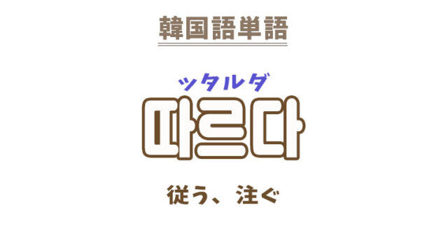 単語・慣用句 韓国語【따르다】を覚える! 2022年9月26日 makumaku 따르다ッタルダ 従う、注ぐ〔動詞〕 一緒に覚える! 【따라다니다】:付いて行く〔動詞〕 【따라붙다】:追い付く〔動詞〕 【따라서다】:後ろから追い付 …
