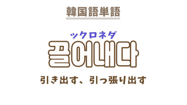 単語・慣用句 韓国語【끌어내다】を覚える! 2022年9月22日 makumaku 끌어내다ックロネダ 引き出す、引っ張り出す〔動詞〕 一緒に覚える! 【끌다】:引く〔動詞〕 【끌어내다】の解説 【끌어내다】の日本語訳。 …
