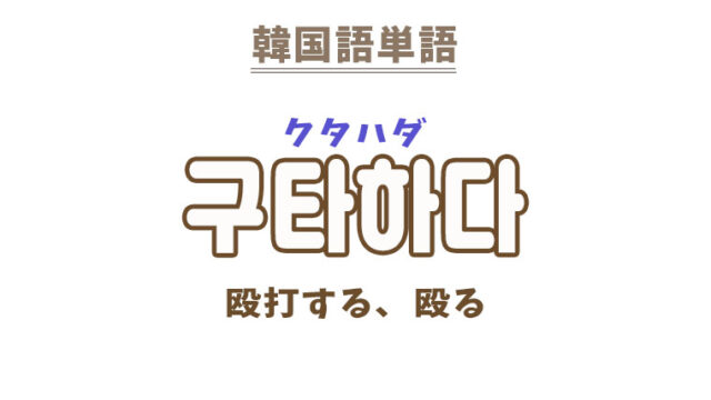 単語・慣用句 韓国語【구타하다】を覚える! 2022年9月21日 makumaku 구타하다クタハダ 殴打する、殴る〔動詞〕 一緒に覚える! 【구타】:殴打〔名詞〕 【구타하다】の解説 【구타하다】の日本語訳。 …