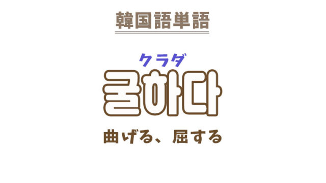 単語・慣用句 韓国語【굴하다】を覚える! 2022年9月15日 makumaku 굴하다クラダ 曲げる、屈する〔動詞〕 【굴하다】の解説 【굴하다】の日本語訳。 (体を)曲げる、屈める めげる、屈服する、屈する …