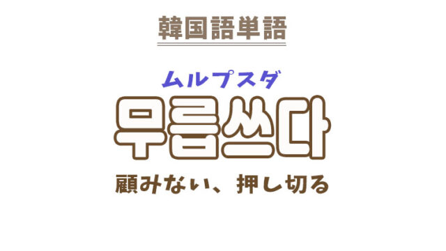単語・慣用句 韓国語【무릅쓰다】を覚える! 2022年7月21日 makumaku 무릅쓰다ムルプスダ 顧みない、押し切る〔動詞〕 【무릅쓰다】の解説 【무릅쓰다】の日本語訳 (困難を)顧みない、(危険を)冒す、押し切る …
