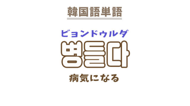 単語・慣用句 韓国語【병들다】を覚える! 2022年3月25日 makumaku 병들다ビョンドゥルダ 病気になる〔動詞〕 一緒に覚える! 【들다】:(病気に)掛かる〔動詞〕 【병】:病〔名詞〕 【병들다】の解説 …