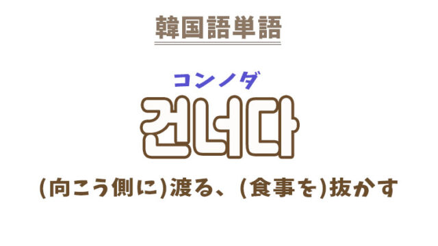 単語・慣用句 韓国語【건너다】を覚える! 2022年3月29日 makumaku 건너다コンノダ (向こう側に)渡る、(食事を)抜かす〔動詞〕 一緒に覚える! 【건너】:向こう〔名詞〕 【건너다보다】:眺める〔動詞〕 【건널목】: …